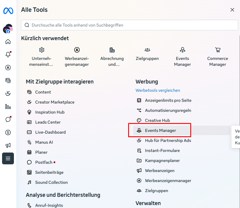 In deiner Meta Business Suite findest du deinen Events Manager. Auch damit kannst du die Anbindung erfolgreich testen.