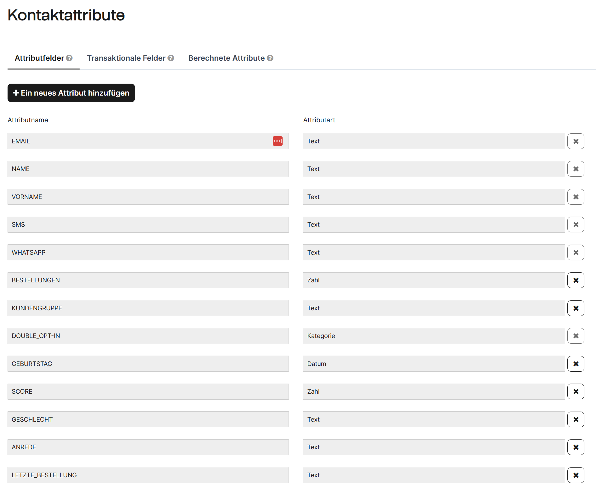 Damit das Plugin die Kontaktattribute automatisch synchronisiert, musst du diese vorab anlegen.