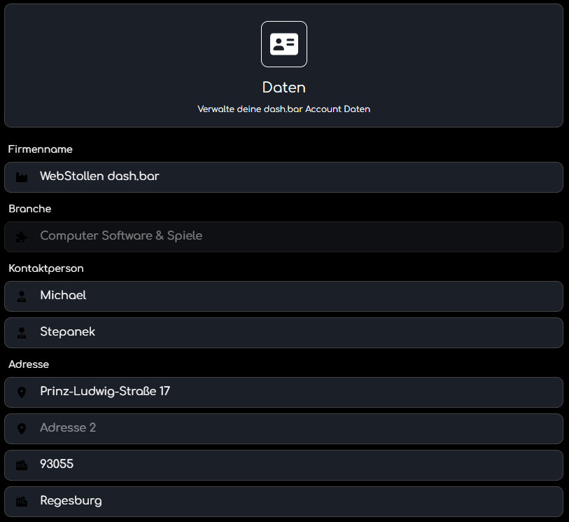 Kein Problem, diese kannst du ganz einfach selbst anpassen. Klicke auf dein Profilbild und dann in der Rubrik Unternehmen auf den Punkt "Daten".
