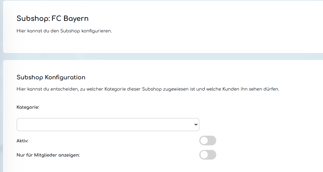 Klicke auf den erstellten Subshop und weise ihm eine Kategorie zu.