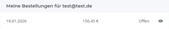 Im Konto des Außendienst-Benutzers sind die Bestellungen zu sehen, die er für einen anderen Kunden bestellt hat.