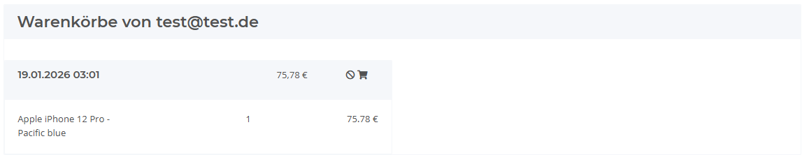 Ein Organisation-Nutzer kann die abgegebenen Warenkörbe der Mitglied-Nutzer sehen, die ihm zugeordnet sind.